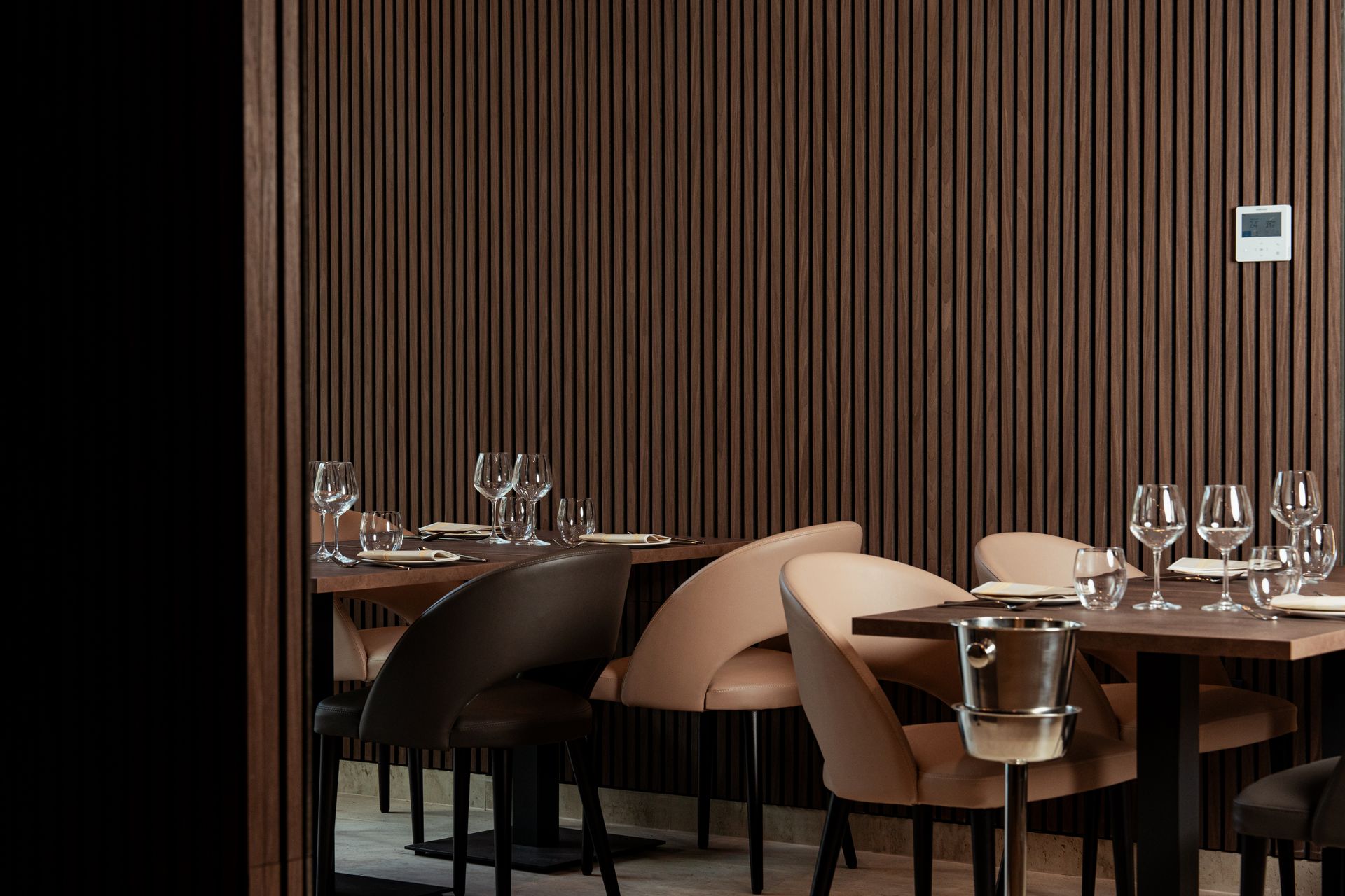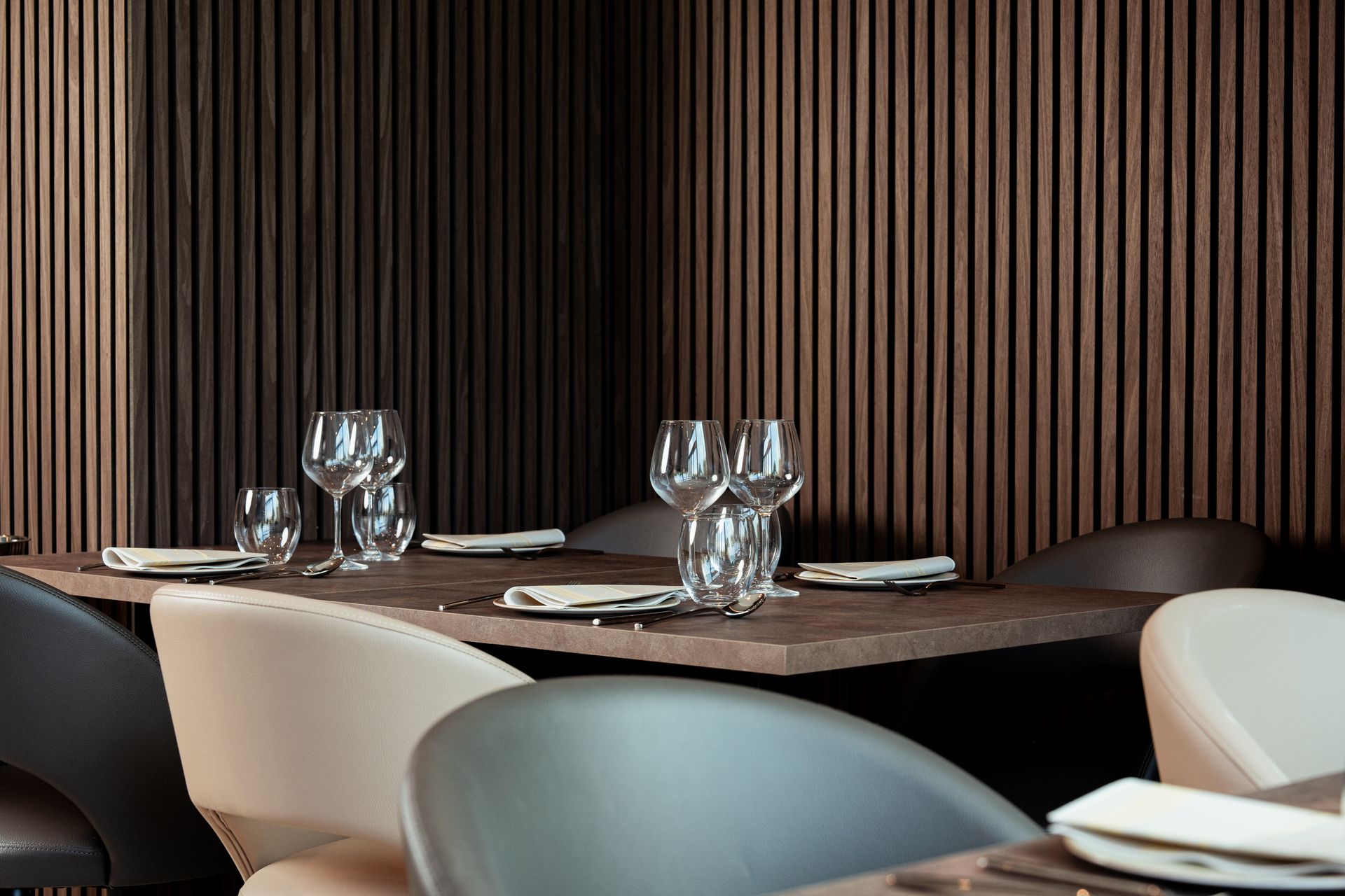Il ristorante è stato progettato per offrire un’esperienza completa: spazi ampi ma intimi, luci soffuse e materiali naturali che richiamano i colori del mare. L’atmosfera di Gaudere è pensata per accogliere con armonia ogni occasione, che si tratti di un pranzo di lavoro, una cena romantica o una celebrazione importante.